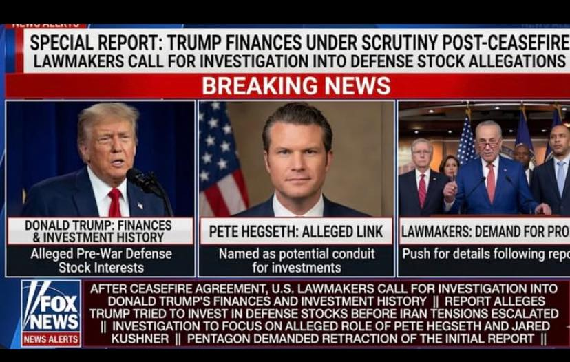 BREAKING: After Ceasefire Agreement, U.S. Lawmakers Call for Investigation Into Donald Trump’s Finances and Investment History after Report he may have tried to invest in defense stocks before the war in Iran began through Pete Hegseth Jared Kushner— Which the Pentagon demanded be RetractedBREAKING: After Ceasefire Agreement, U.S. Lawmakers Call for Investigation Into Donald Trump’s Finances and Investment History after Report he may have tried to invest in defense stocks before the war in Iran began through Pete Hegseth Jared Kushner— Which the Pentagon demanded be RetractedBREAKING: After Ceasefire Agreement, U.S. Lawmakers Call for Investigation Into Donald Trump’s Finances and Investment History after Report he may have tried to invest in defense stocks before the war in Iran began through Pete Hegseth Jared Kushner— Which the Pentagon demanded be Retracted